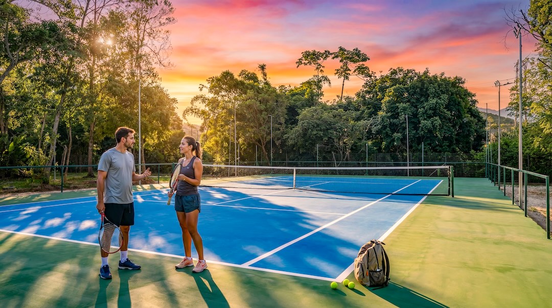 Quadras de tênis, areia e poliesportiva